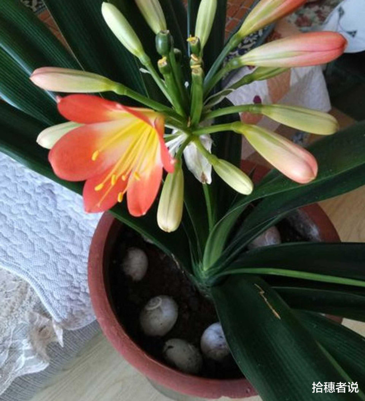 再说说光照。君子兰不能晒大太阳,它喜欢散光。我在福建的一个朋友,他买了一盆君子兰,想着光照好长得快,就把它放阳台全日照,没几天叶子就有点发黄,后来他把君子兰往阴凉处移了移,才好起来。这不同地势也有影响呢。在山地种君子兰和在平地种就不同,山地昼夜温差大,君子兰积累养分多,长得更壮实,花也更多更大。